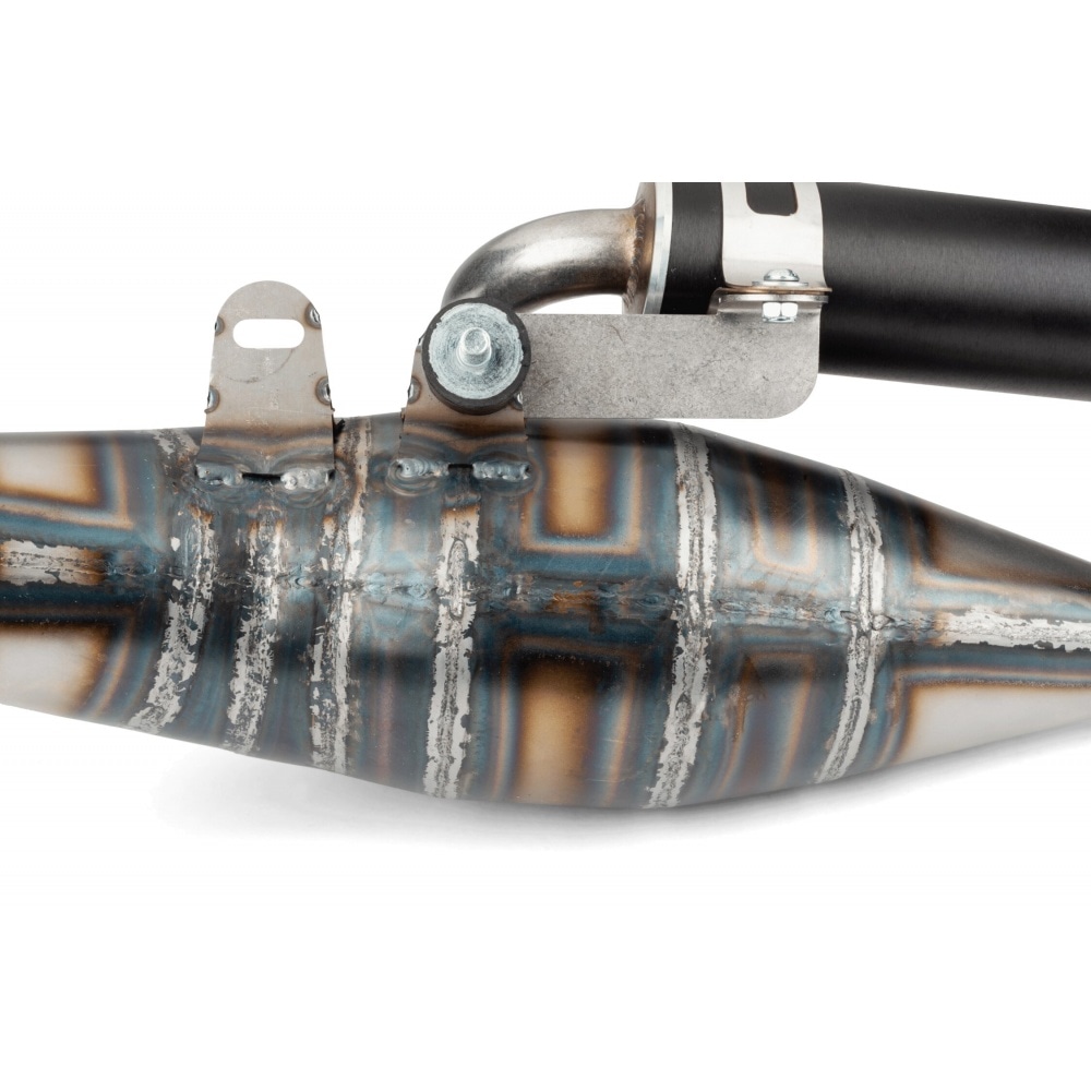 IMPORTANT: This exhaust is NOT compatible with original Minarelli crankcases. It is designed exclusively for FL (flanged mounted) type crankcases, with external cylinder mounting. It is supplied without exhaust ball joint, so you must use the one supplied with the cylinder.