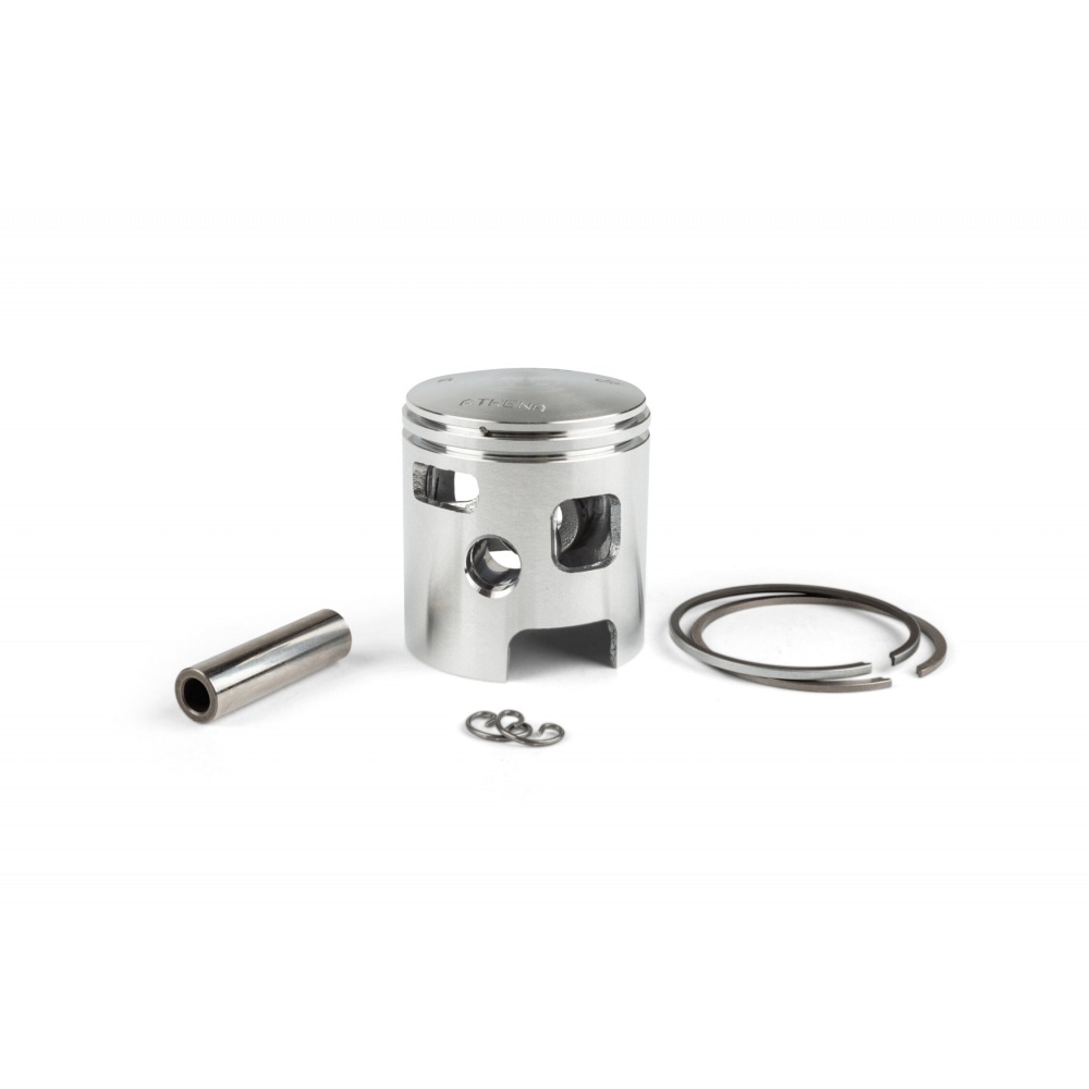 Replacement piston for Athena aluminum cylinder 46mm. This piston set contains all the necessary parts: Piston, piston pin, piston rings and circlips.
