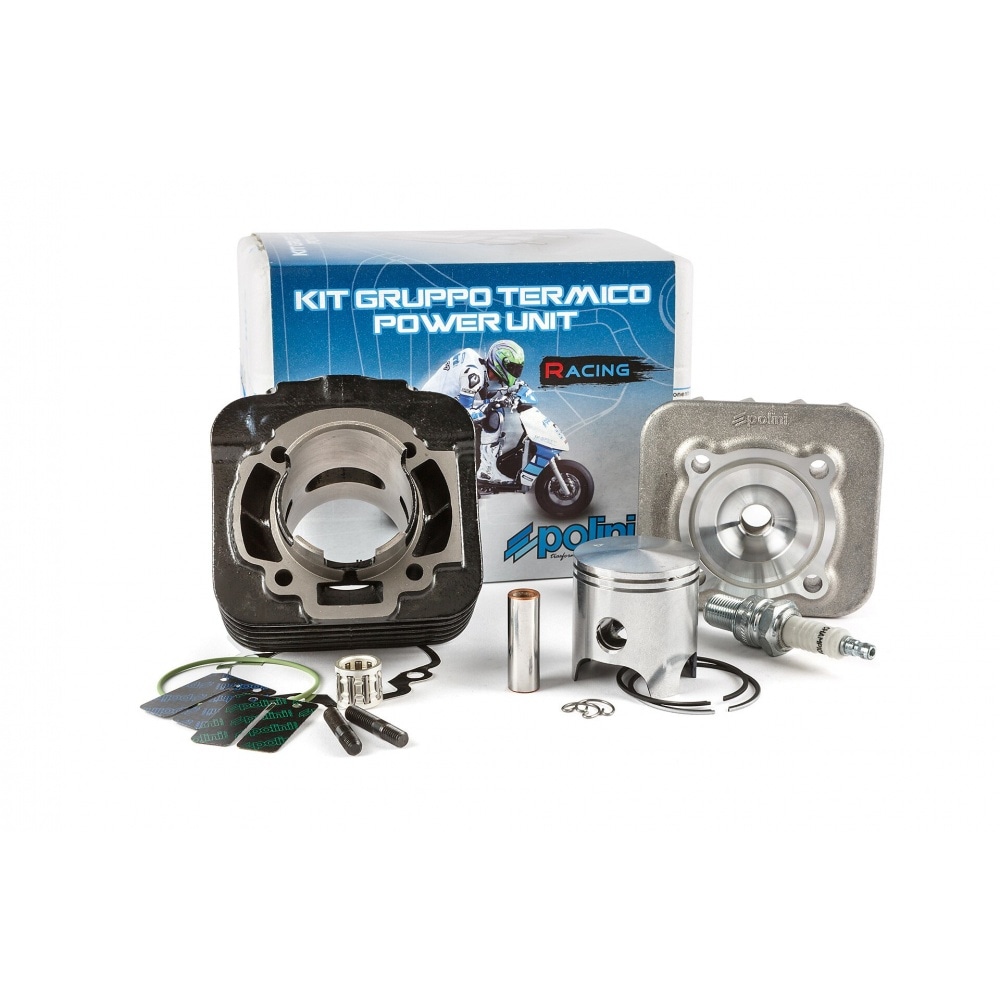 Polini based this cylinder kit on their 70cc Cast Iron Sport kit and redesigned it to improve performance and give it more power. More specifically, Polini modified the cylinder's port timings (longer) and redesigned the shape of the exhaust port resulting in an increase of power up to 10/12hp (with a 17.5mm carburetor and a sports exhaust). The piston was also a modified as a special "Corsa" piston even though it remains a two-ring piston.