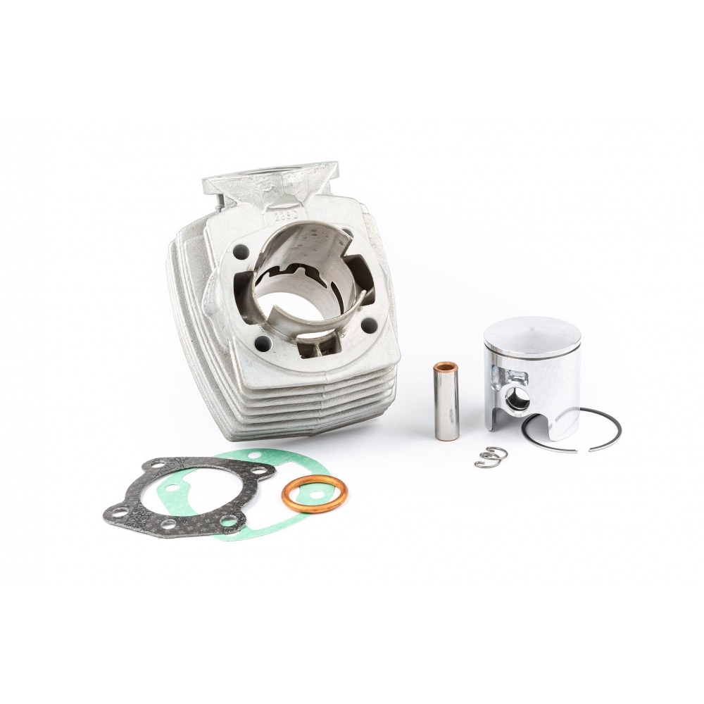 We recommend combining the Polini 70cc Cylinder Kit "Alu W", d=46mm, Peugeot 103 AC with a 15mm carburetor (at least) and a high-rpm sports exhaust. Although you can use your original cylinder head, we recommend replacing it with a high-compression cylinder head for even higher performance. The kit does not include a cylinder head.