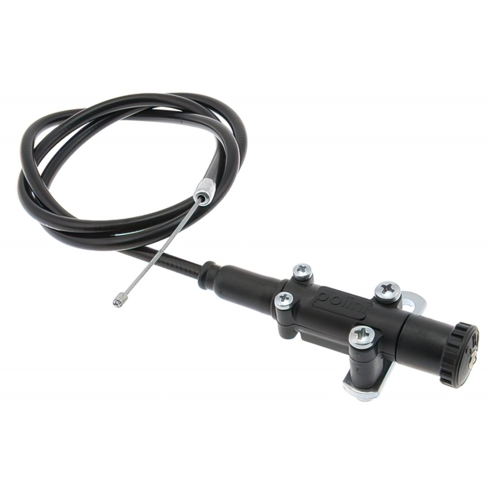 Manual cable choke kit / conversion kit by Polini, including cable, sleeve and choke knob with spring and bracket. Black.