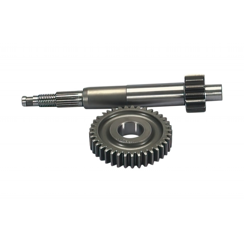 Taller gears reduce the overall reduction factor of the gearbox. If the engine is powerful enough to pull the taller gears, this modification will also raise top speed. Only use with tuning kits! Original cylinders are normally not powerful enough to pull this sort of gearing. For all Piaggio engines built since '99 with counter bearing in the gear cover.