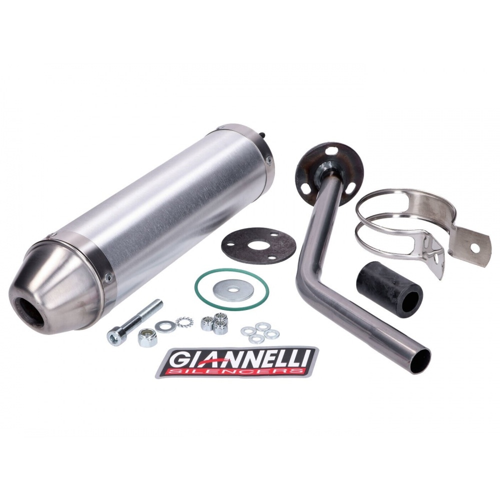 The muffler comes with the small parts needed to install exhaust and silencer and a heat resistant Giannelli sticker.