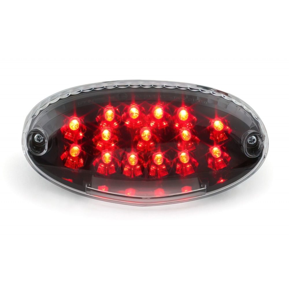 "Black Line" LED Tail Light by visual tuning specialist STR8. It features a black background instead of the standard chrome-plated one, and a Lexus style clear lens.. It is equipped with 15 powerful LEDs, and gives your scooter a very modern touch.