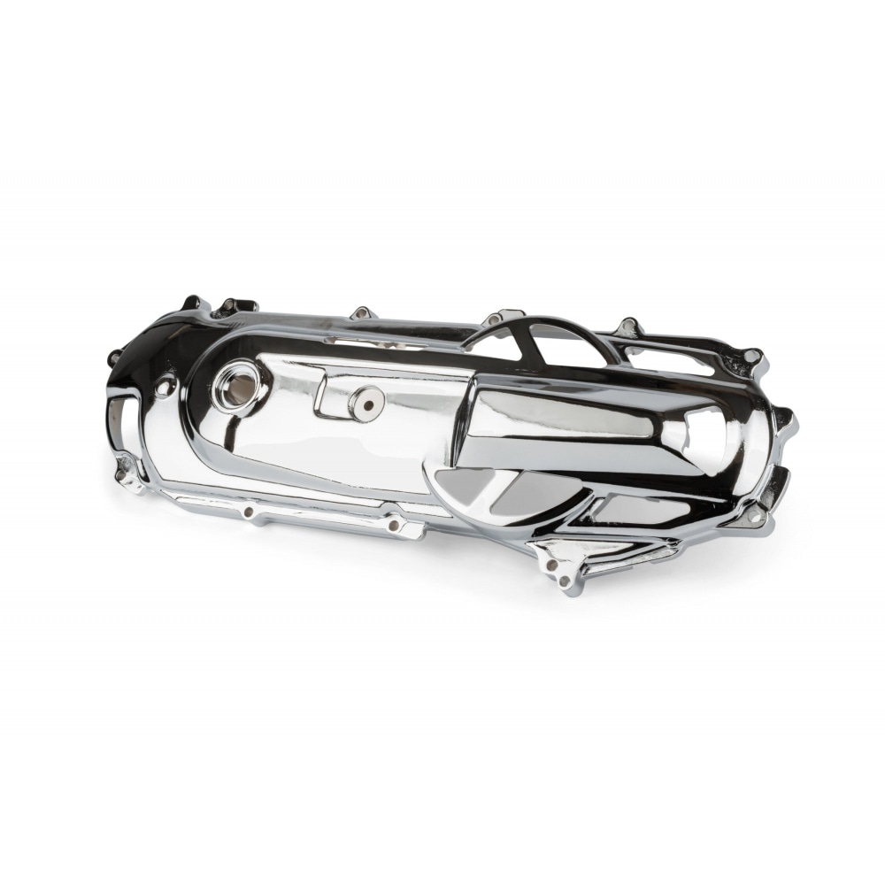 TNT Variator Cover "Cut Out" for Yamaha BW's / MBK Booster. This chrome-coloured cover is a great looking custom part, with large dragster style cut-outs. These vents guarantee excellent cooling of the pulleys which results in better, more reliable performance, especially during races.