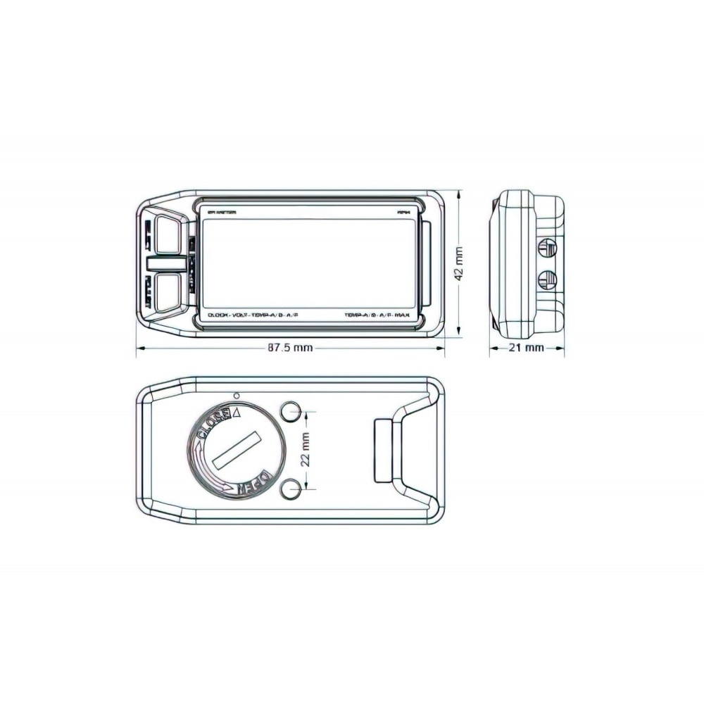 - Time, Shift light, Temperature, Exhaust temperature, Engine temperature, RPM, Voltmeter
