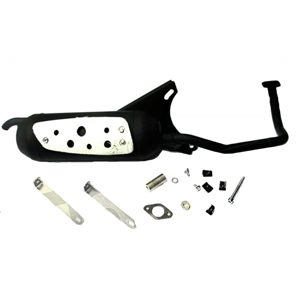 Tecnigas Exhaust "Silent Pro" GY6 Retro low mount - OEM quality exhaust, perfect replacement exhaust. Low key look, but quite capable of improving the performance of your scooter (more torque + top speed).