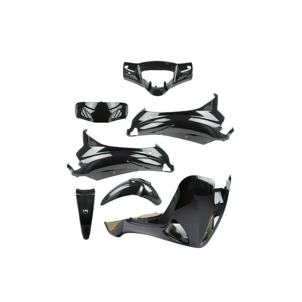 Instead of replacing individual panels it is advisable to replace them all at once; this way you can avoid small variations in colour, design or finishing quality. This is a TNT Fairing Kit (7 pcs.) black Piaggio Liberty 50cc - 200cc 2004 - 2014. The plastics have the same shapes and measurements as the original ones, they look slightly more sporty and aggressive. You can thus keep the general look of your scooter and add a special touch.