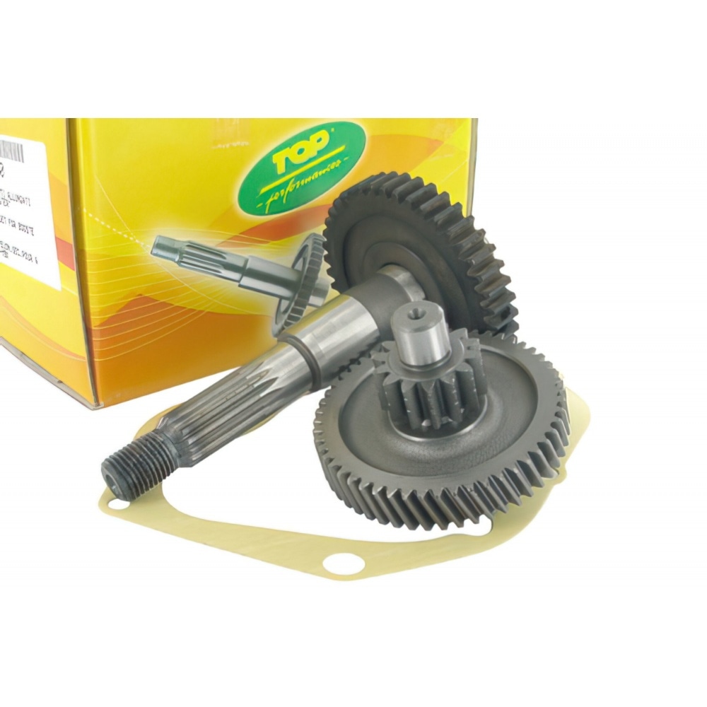 The gears are pre-pressed and ready to install. For original primary transmission with 13 teeth, suitable for long Minarelli engines.