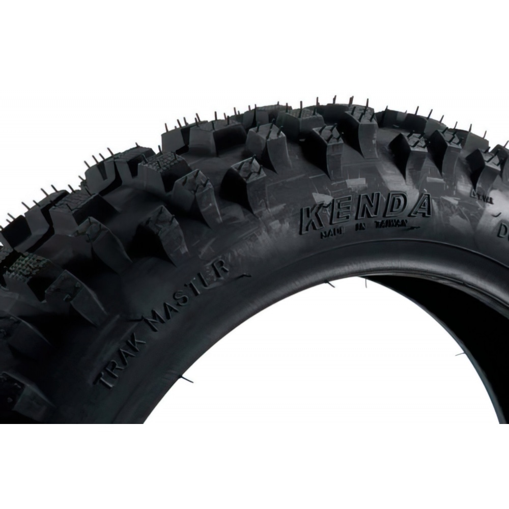 Must-have tire for off-road fans: Tyre Kenda Cross K760 TRAK MASTER, 100/80-12, 6PR, 50M. The Trak Master is an excellent, extremely robust off-road tire that can be used on-road as well. The tall knobs cut through the surface and "bite" into the ground and provide fantastic traction on muddy, soft and loose terrain.