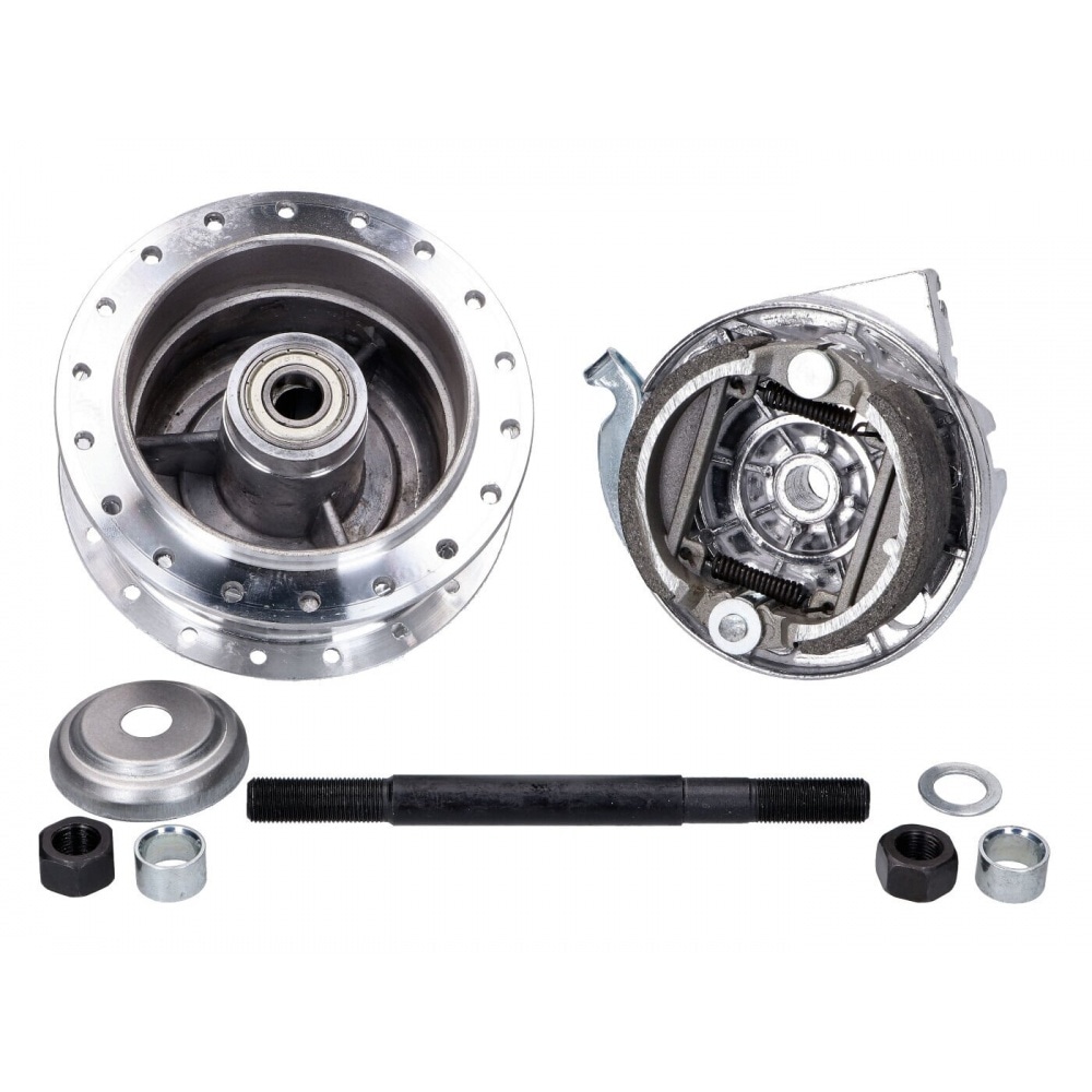 Wheel Hub complete with brake base plate and axle rear Puch Maxi / X30 (cast wheel)