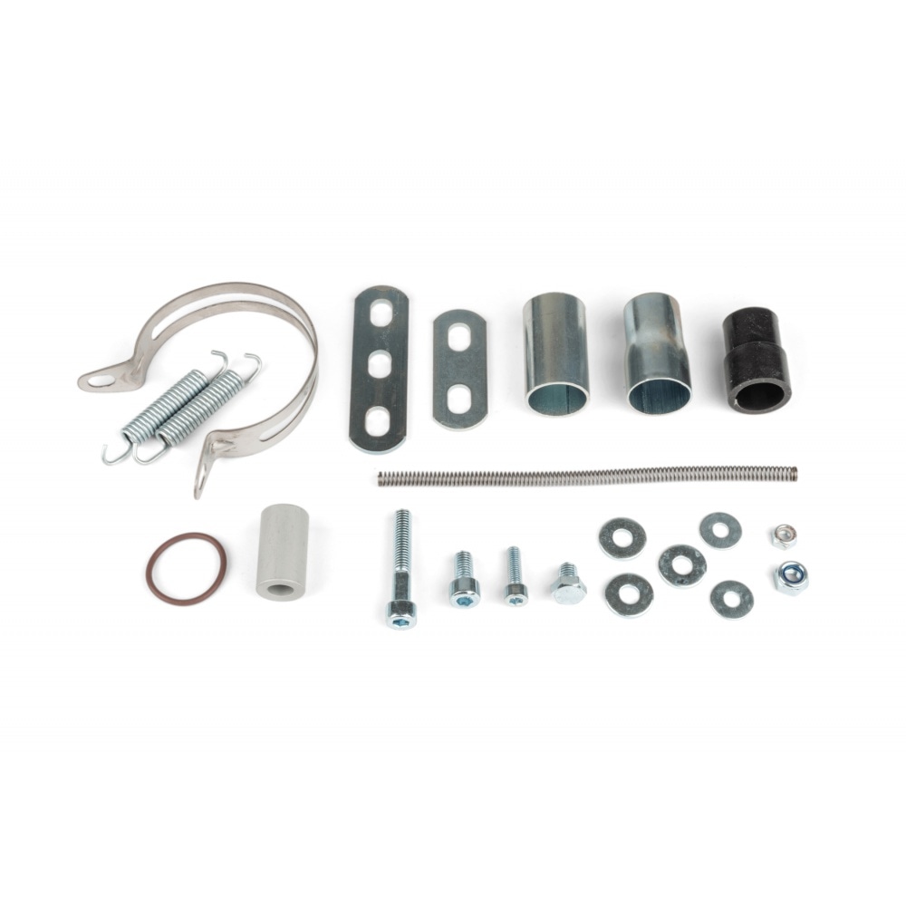 Replacement for the original mounting hardware for the exhaust Voca Cross Rookie 50 – 70cc CE Rieju MRX / RR MH Furia. Complete kit including all parts – springs, washers, bushings, screws, silentblocs, spacers, etc.