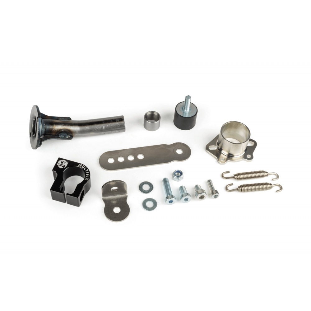 KRM has developed a rather ingenious mounting system for their systems, the so-called Multifix exhaust clamp. Over the years it has become apparent that fitting exhausts to the ever changing frames of new models causes lots of problems.