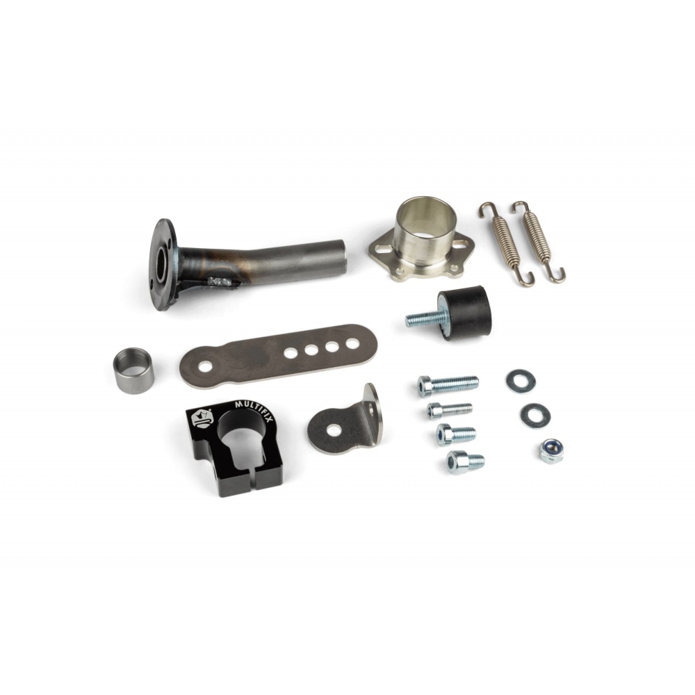KRM ir izstrādājusi diezgan atjautīgu montāžas sistēmu savām sistēmām, tā saukto Multifix izplūdes kronšteinu (vai skavu) sistēmu. Gadu gaitā ir kļuvis skaidrs, ka izplūdes sistēmu piestiprināšana pastāvīgi mainīgajiem rāmjiem, kas ir saistīti ar jebkuru jaunu tirgū ienākošu modeli, rada daudz problēmu. Šī regulējamā montāžas sistēma ļauj droši piestiprināt izplūdes sistēmu daudziem dažādiem modeļiem; turklāt klusinātājam vairs nav nepieciešams skava.