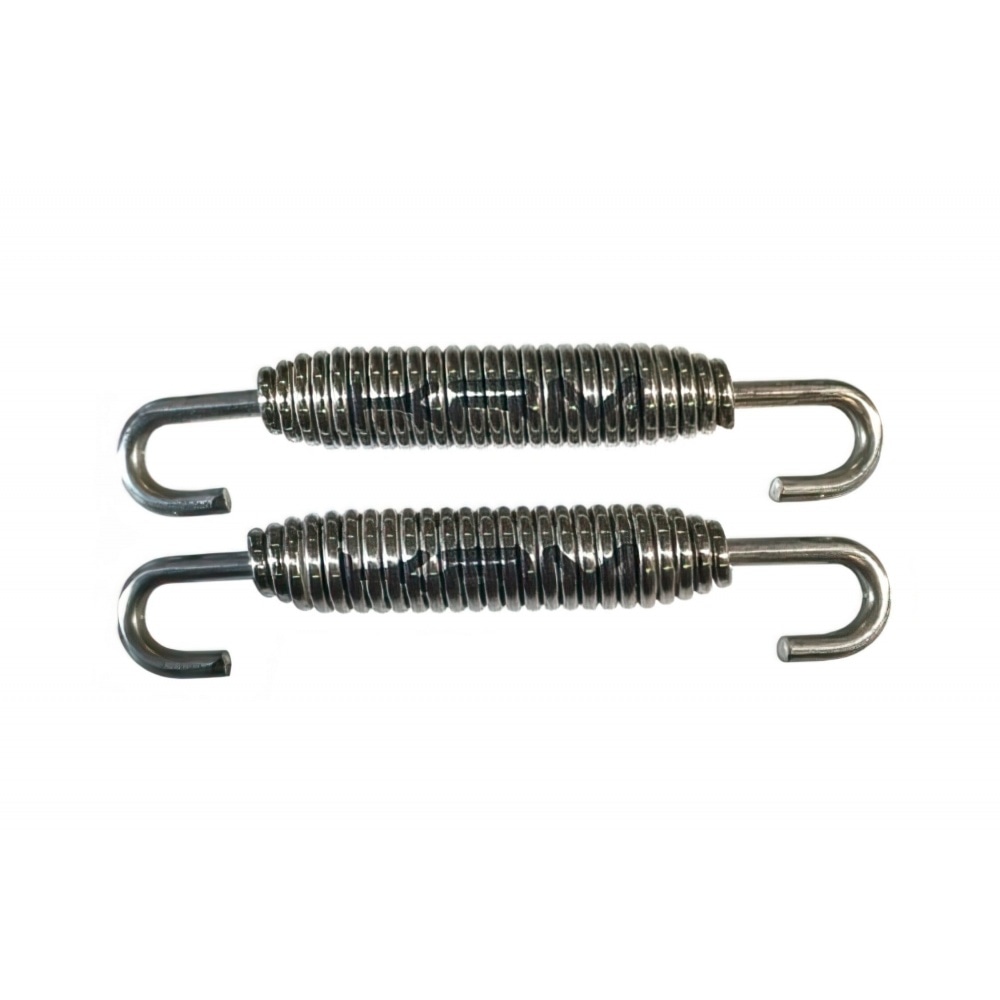 KRM Pro Ride Exhaust Springs, top quality stainless steel springs to fix your exhaust. The springs (x2) are made from premium stainless steel to prevent corrosion; in addition, stainless steel has better mechanical properties and is more elastic which is a good thing when it comes to springs. The springs are swivel springs so the hooks move and can be mounted to all types of vehicles.