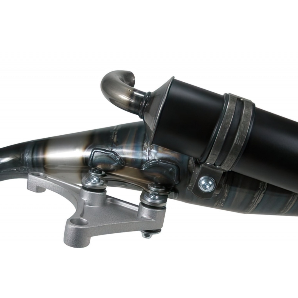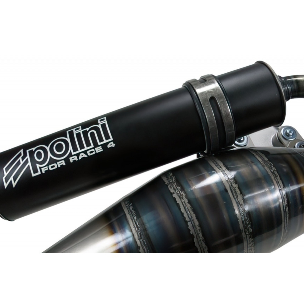 This is already the 4th generation of the Polini ForRace. The design is heavily based on that of BigEvolution and Evolution 4. The expansion chamber incorporates additional cones and comes with a black anodised silencer. Power is still in the midRace range though.Without E-markings!