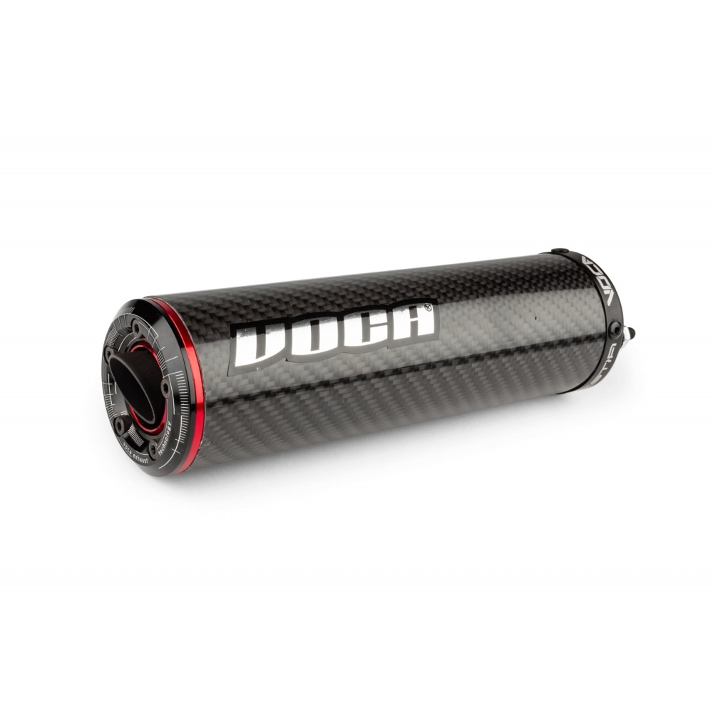 Exhaust Voca Cross Carbone 80 - 90cc Sherco SM-R / SE-R (high mount) for owners of high powered mopeds. The Cross Carbon is an extremely powerful exhaust for 50cc motorcycles, high-end at its finest! Voca Racing is one of the leading manufacturers of outstanding tuning exhausts for scooters and mopeds, and the Cross Carbon is no exception. Workmanship and material quality are, as always with Voca, impeccable.