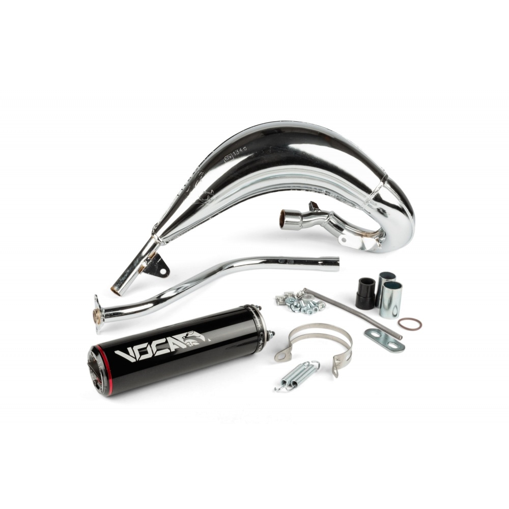 In addition to the Cross Rookie, Voca Racing offers this Exhaust Voca Cross Chromed 50 / 70cc CE black Beta RR after 2012 – a homologated, very powerful tuning exhaust with a sharp looking chrome body.