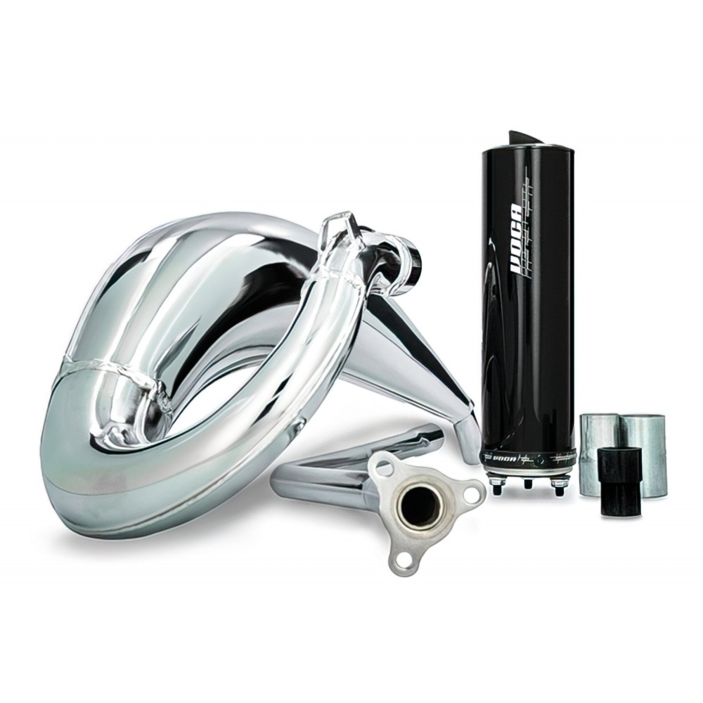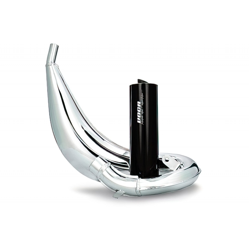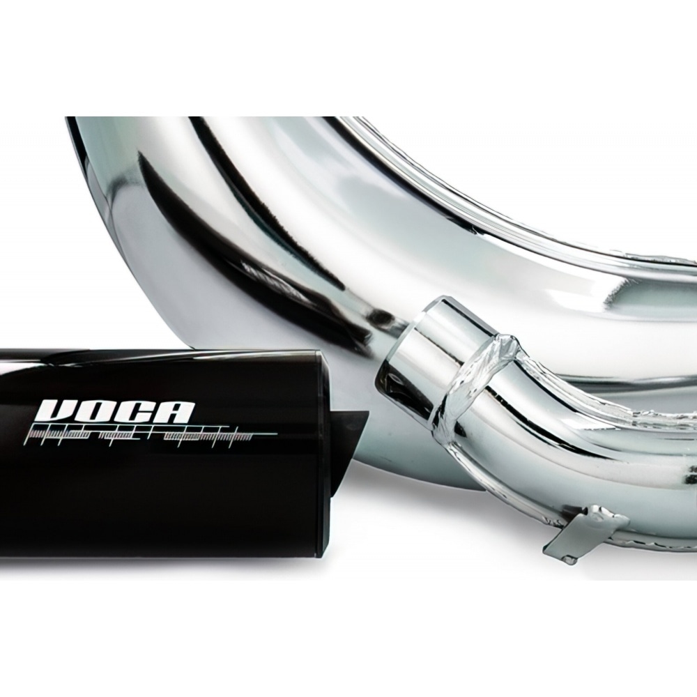 In addition to the Cross Rookie, Voca Racing offers this Exhaust Voca Cross Chromed 50 / 70cc CE black Rieju MRT – a homologated, very powerful tuning exhaust with a sharp looking chrome body.