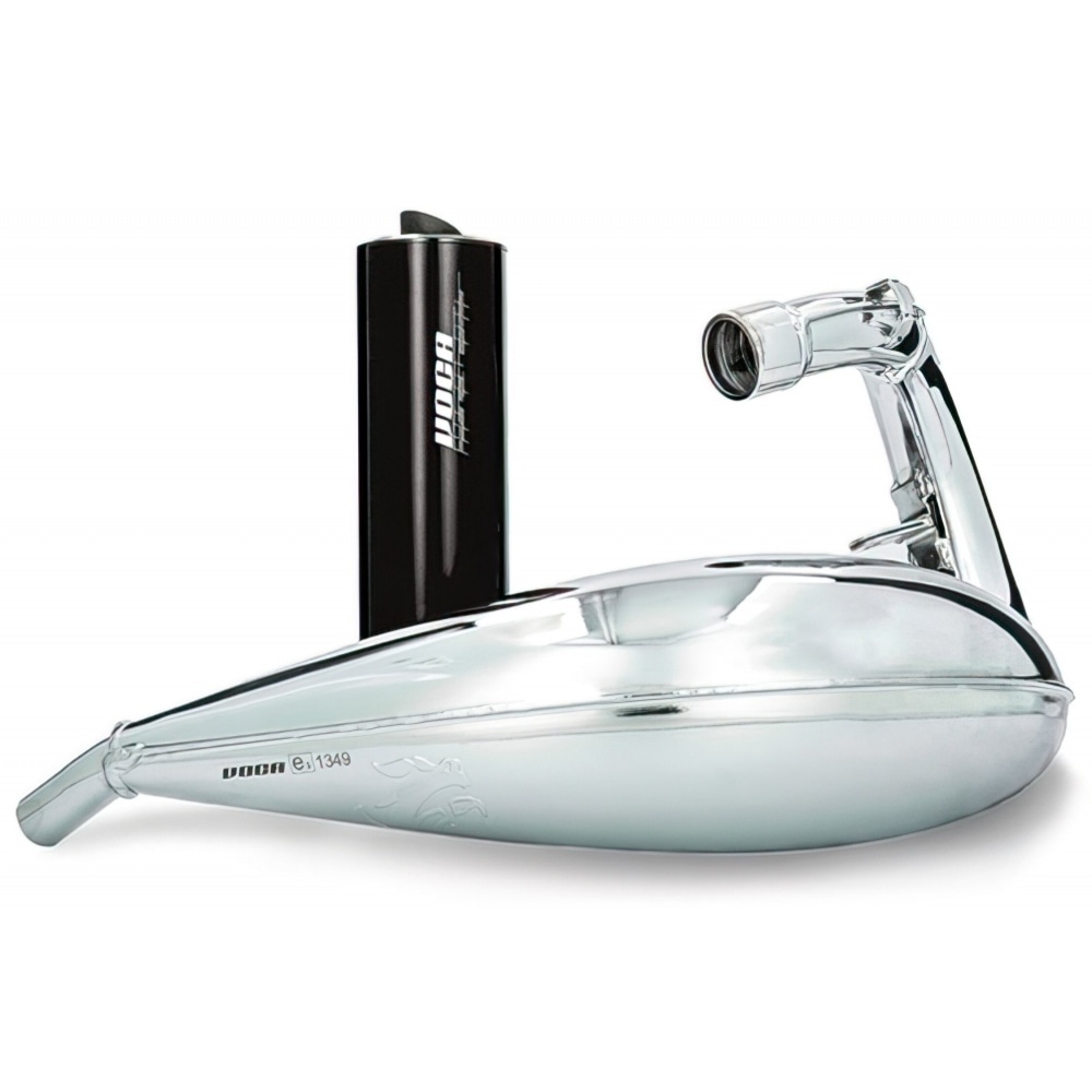 Virsbūve ir hromēta, kas ne tikai izskatās lieliski, bet arī padara to mazāk pakļautu rūsas veidošanās riskam. Izplūdes gāzei ir alumīnija trokšņa slāpētājs melnā vai sarkanā krāsā ar lazurētu Voca logotipu. Kā redzams attēlos, izplūdes gāzei ir pievienotas visas montāžai nepieciešamās mazās detaļas, kā arī papildu adapteri/uzmavas.