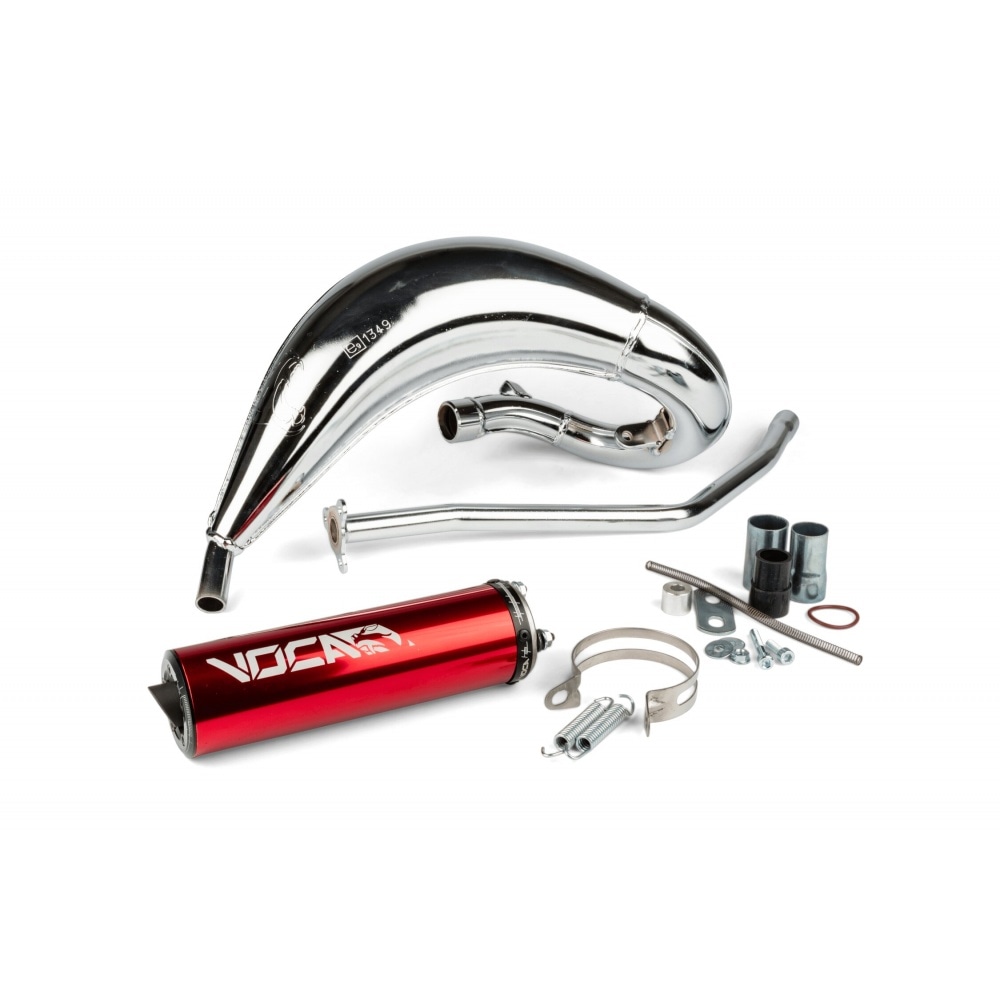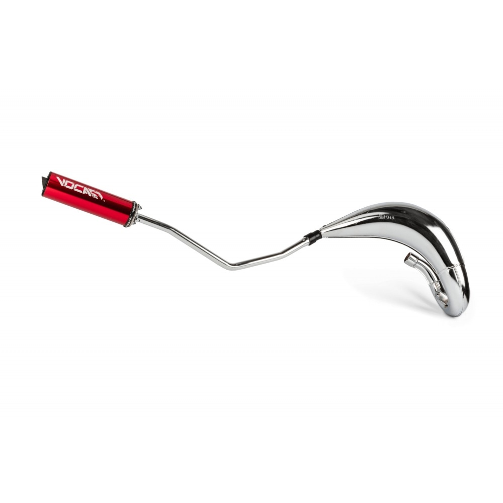 In addition to the Cross Rookie, Voca Racing offers this Exhaust Voca Cross Chromed 50 / 70cc CE red Rieju MRT – a homologated, very powerful tuning exhaust with a sharp looking chrome body.