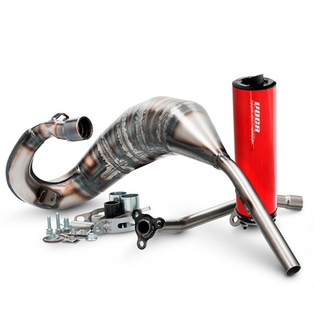 Voca Racing Exhaust Cross Rookie 50cc/70cc Beta RR after 2021 (with red silencer) – extremely powerful exhaust by Spanish racing expert Voca Racing. The Rookie line is Voca’s first street-legal exhaust line.