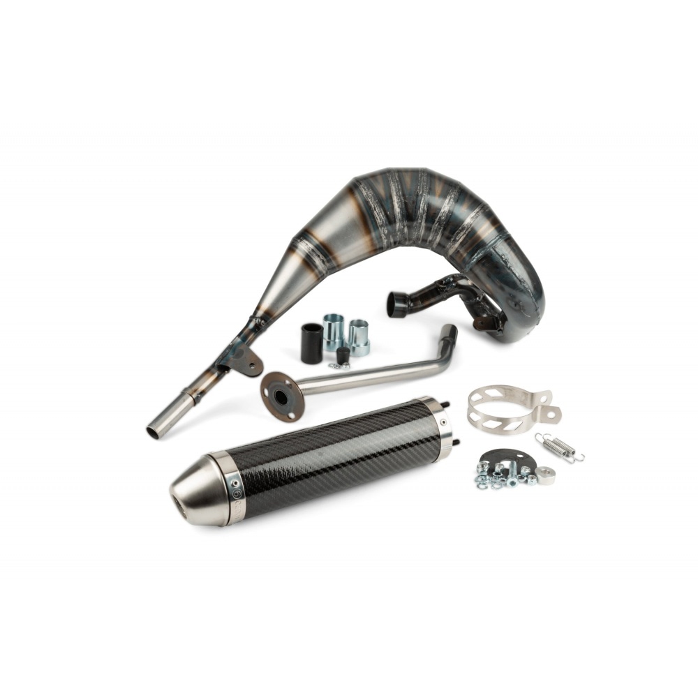 The Enduro exhausts are high-mount exhausts with classic hand-welded expansion chambers with a clear coat that protects against rust. Giannelli exhausts are characterized by high quality workmanship, great sound and excellent performance. Great exhaust with a wide range, with top performance in the medium to high RPM range. The Enduro 2T can be used with original cylinders / setups as well as with performance cylinders 50 - 70cc.