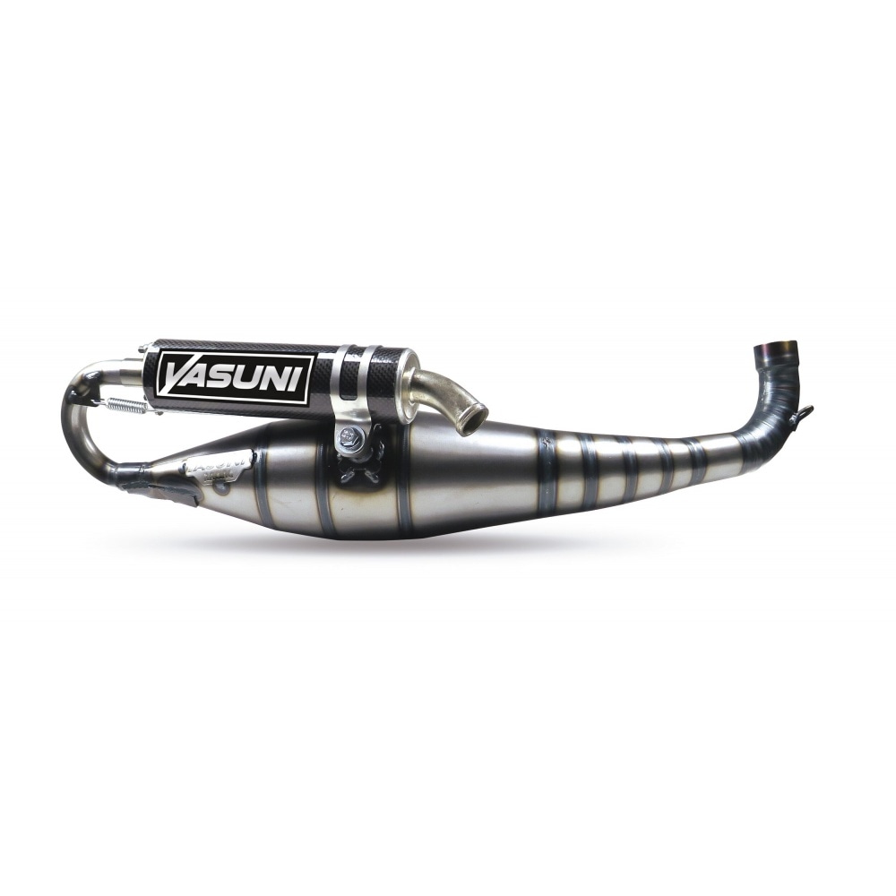 The Yasuni Carrera 40 Carbon for horizontal Minarelli is completely handmade, featuring flawless welds, precise detailing, and a clean finish. Delivered with a carbon-look aluminum silencer.