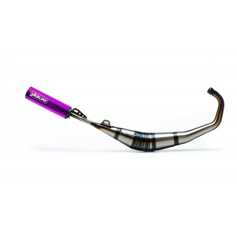 The Yasuni R1 is a mid-race exhaust for 50 cc motorcycles with Derbi or Minarelli AM6 engines. Solid sound and great performance in proven quality from the Spanish exhaust system manufacturer Yasuni.