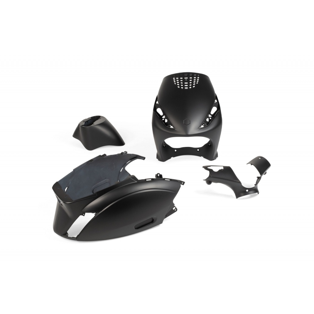 Fairing Kit (5 parts) matte black Piaggio Zip 2000 Air. Top quality plastics for your Piaggio Zip. Perfect for replacing the body kit. Simply mount in place of the original panels, done, and your bike looks like new!