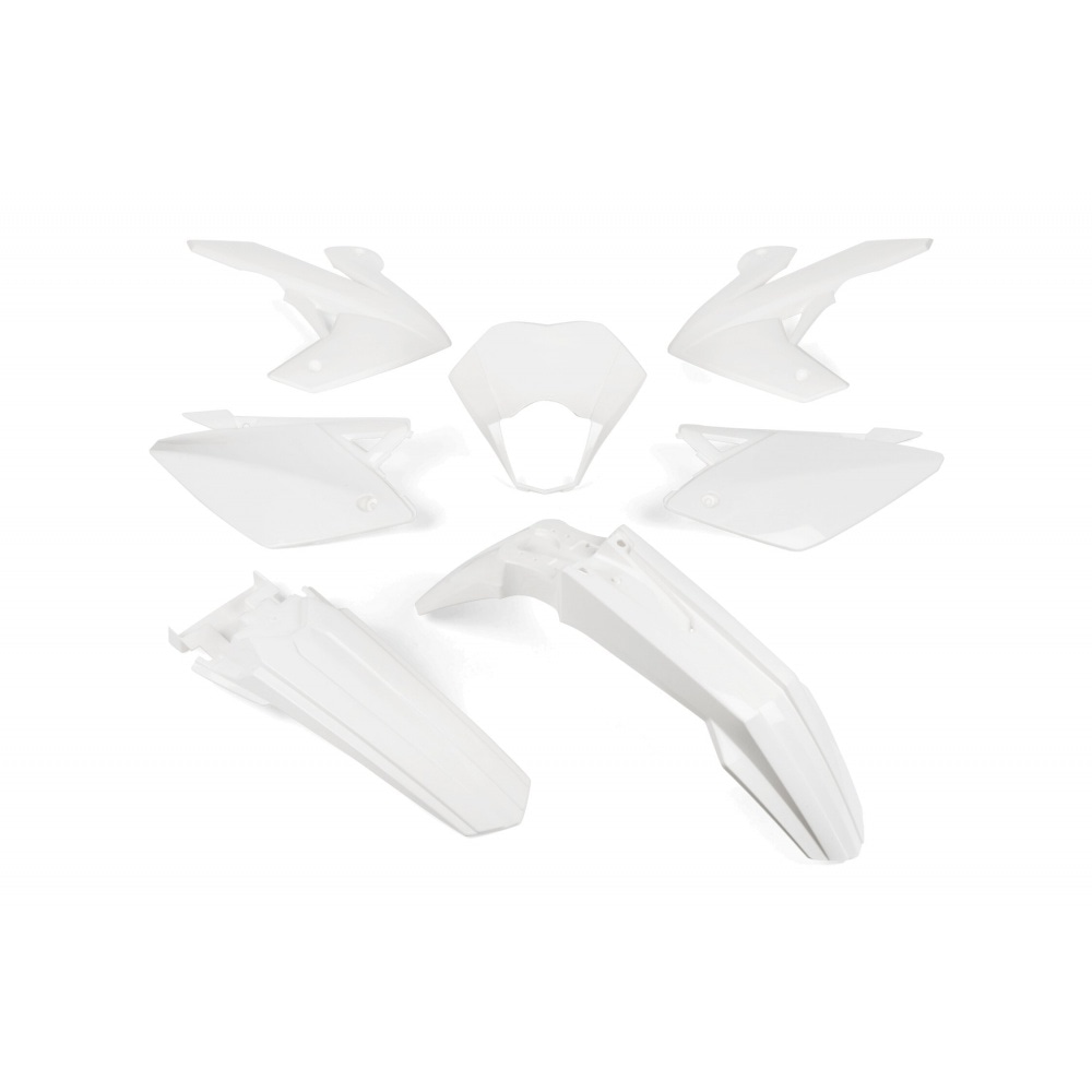 Fairing Kit (7 parts) white Rieju MRT 50cc. Top quality plastics for your supermoto. Perfect for replacing the body kit. Simply mount in place of the original panels, done, and your bike looks like new!