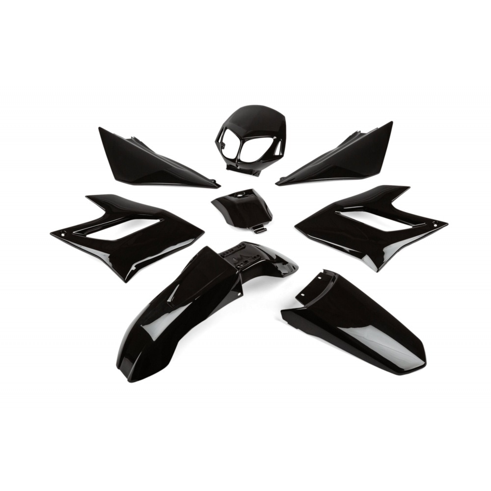 Plastmasa sāk izskatīties veca vai varbūt vēlaties izvēlēties citu krāsu? Aizmugurējā pārsega komplekts 8 gab. melns Derbi DRD Racing 2006 - 2011, pilnīgs virsbūves komplekts jūsu Derbi. Paneļi ir vairāk vai mazāk identiski oriģinālajiem. Plastmasas kvalitāte ir lieliska, paneļu montāža ir diezgan vienkārša, un ļoti īsā laikā jūsu motocikls atkal izskatīsies kā jauns.
