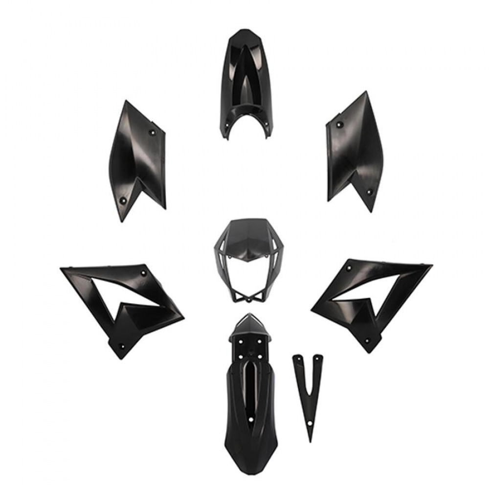 Instead of replacing individual panels it is advisable to replace them all at once; this way you can avoid small variations in colour, design or finishing quality. This is a Fairing Kit (8 pcs.) TNT CPI SM / SX black. The plastics have the same shapes and measurements as the original ones, they look slightly more sporty and aggressive. You can thus keep the general look of your scooter and add a special touch.