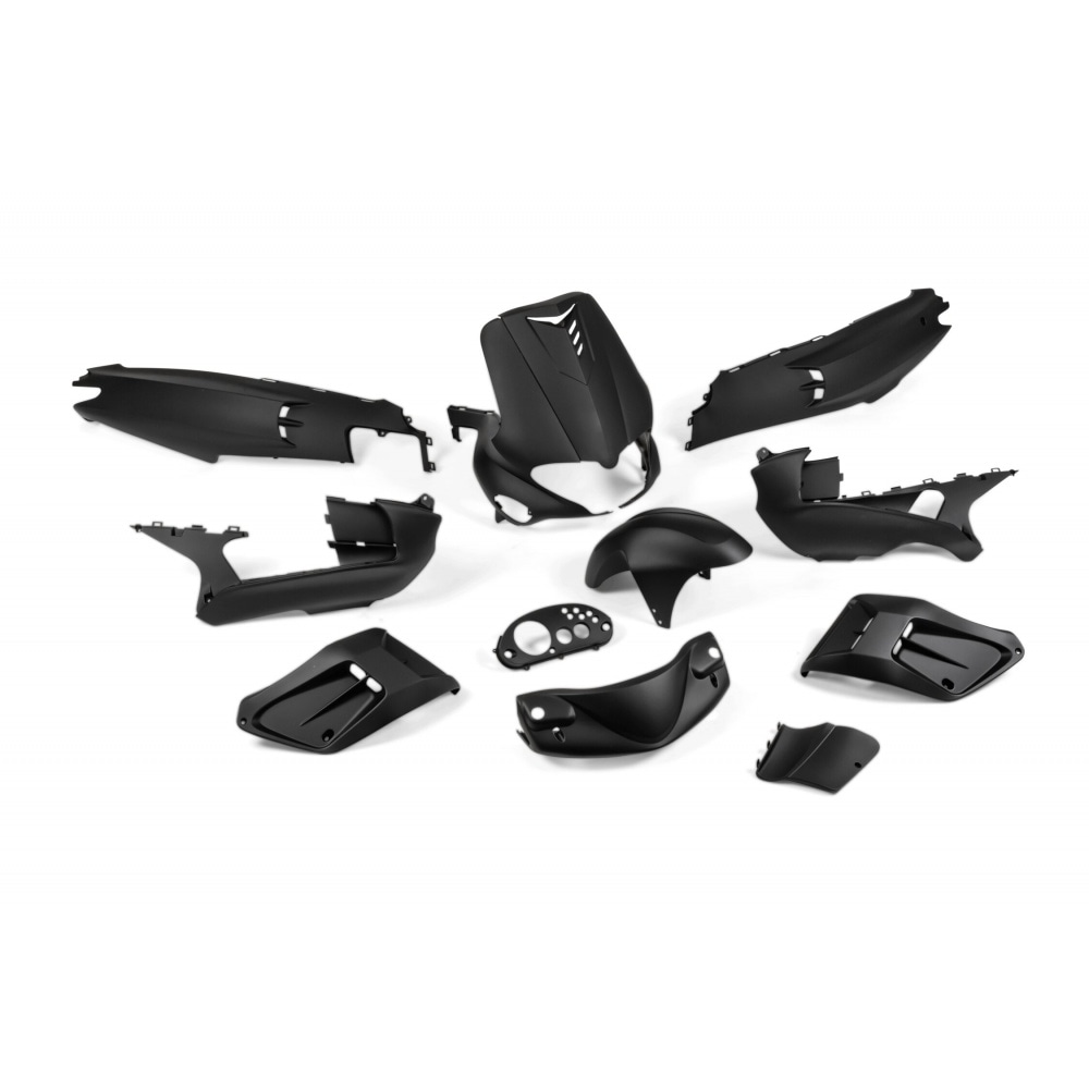 Complete Fairing Kit (13 parts) for Gilera Runner (before August 2005), matte black. Fastenings and shapes are identical to the original panel, you don#t have to modify anything when mounting them.