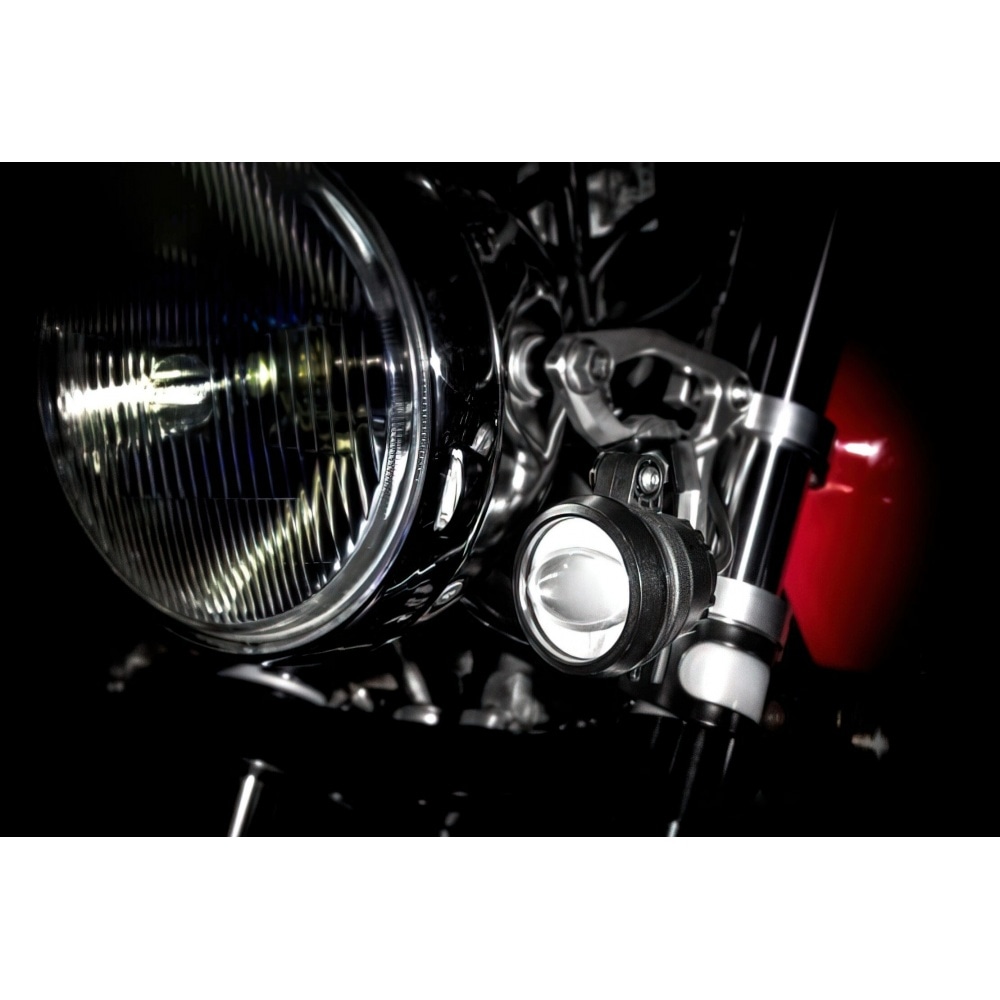 Relatively small, high-quality, bell-shaped fog lights in a black aluminum housing. Thanks to the high-power LEDs, the universally applicable auxiliary headlights ensure good visibility even in dense fog.