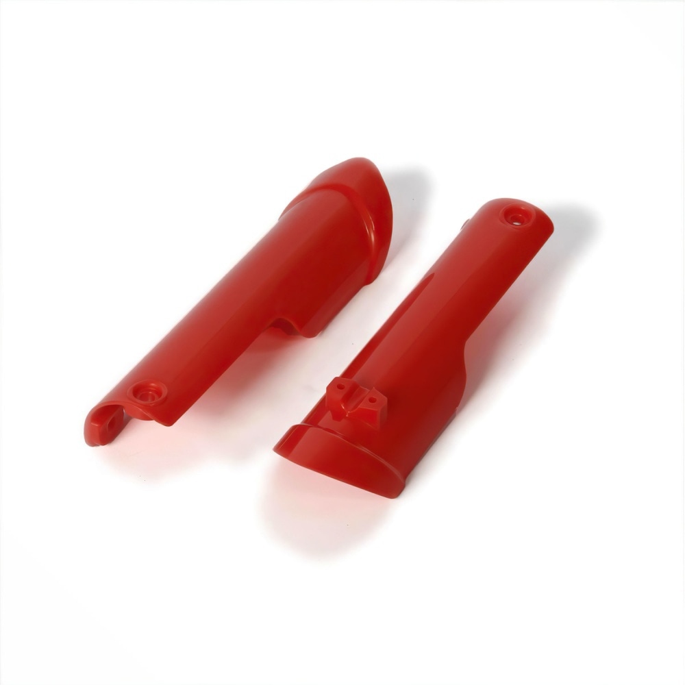 Fork Protectors red Minicross Apollo RXF Mini 55cc.Protect your pitbike forks from mud, sand, stones and whatever else you encounter on your offroad trips. The two protectors are identical to the original Apollo plastics – same shapes, colours and sizes.