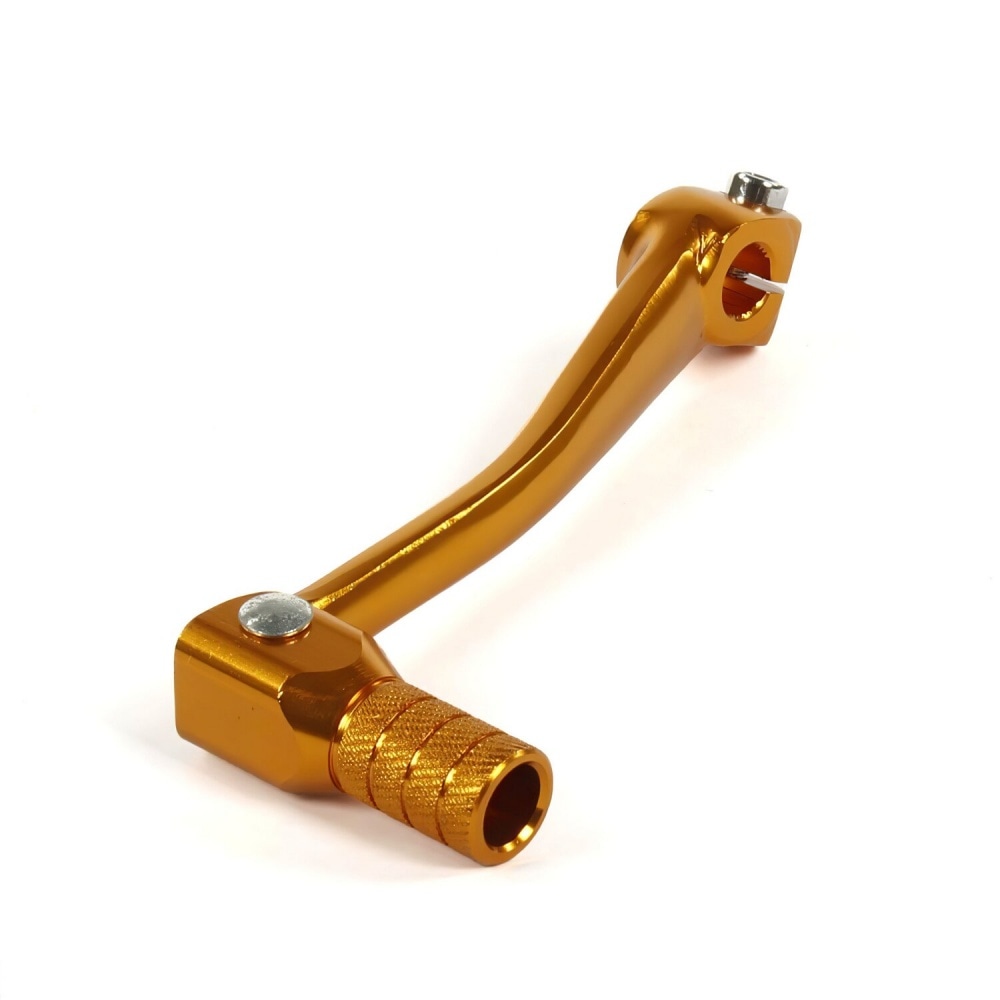 Gear Shift Pedal Pit Biker engine YX / Lifan aluminium gold.This extremely robust lever has a foldable tip with a very strong return spring to ensure a quick return to the starting position in case it folds away on contact with the ground. It also prevents the lever from breaking / bending.