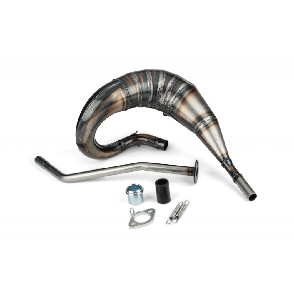 The Enduro exhausts are high-mount exhausts with classic hand-welded expansion chambers with a clear coat that protects against rust. Giannelli exhausts are characterized by high quality workmanship, great sound and excellent performance. Great exhaust with a wide range, with top performance in the medium to high RPM  range. The Enduro 2T can be used with original cylinders / setups as well as with performance cylinders 50 - 70cc.