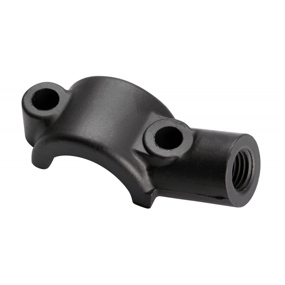 Clamp / half clamp for brake cylinder or clutch fitting from Domino, black, with M19x1.25 mounting hole for the mirror. Here you will find the Domino half clamp without mirror mount. Fits all standard 22mm handlebars.