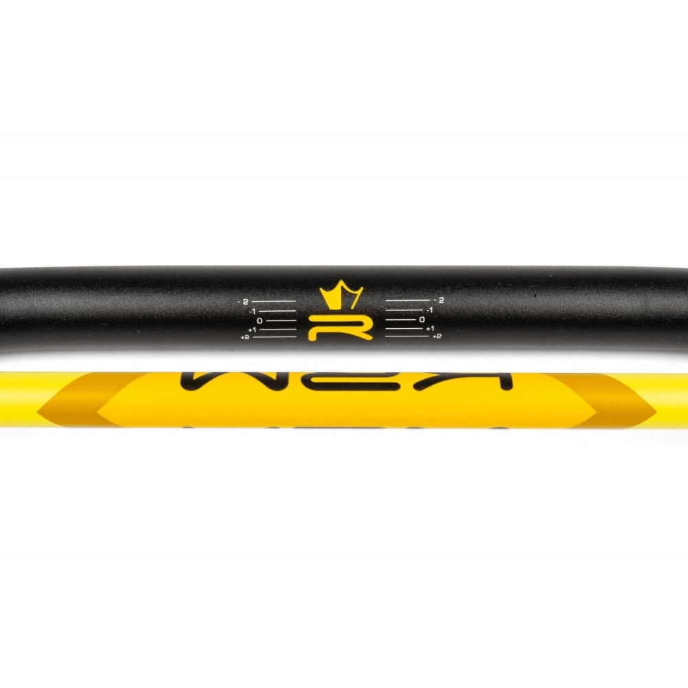 Lasered markings ensure perfect centering and adjustment of the handlebar. The left handlebar end is knurled to prevent the grip from slipping.