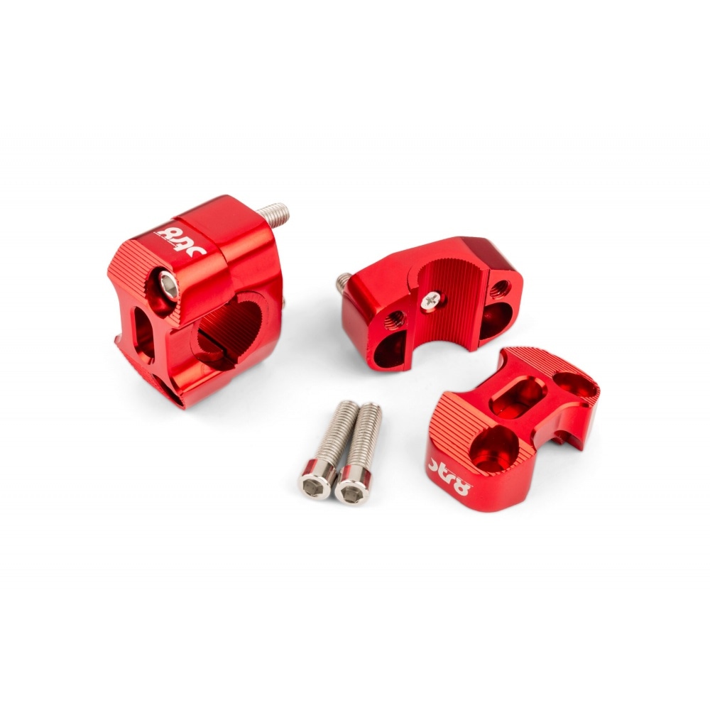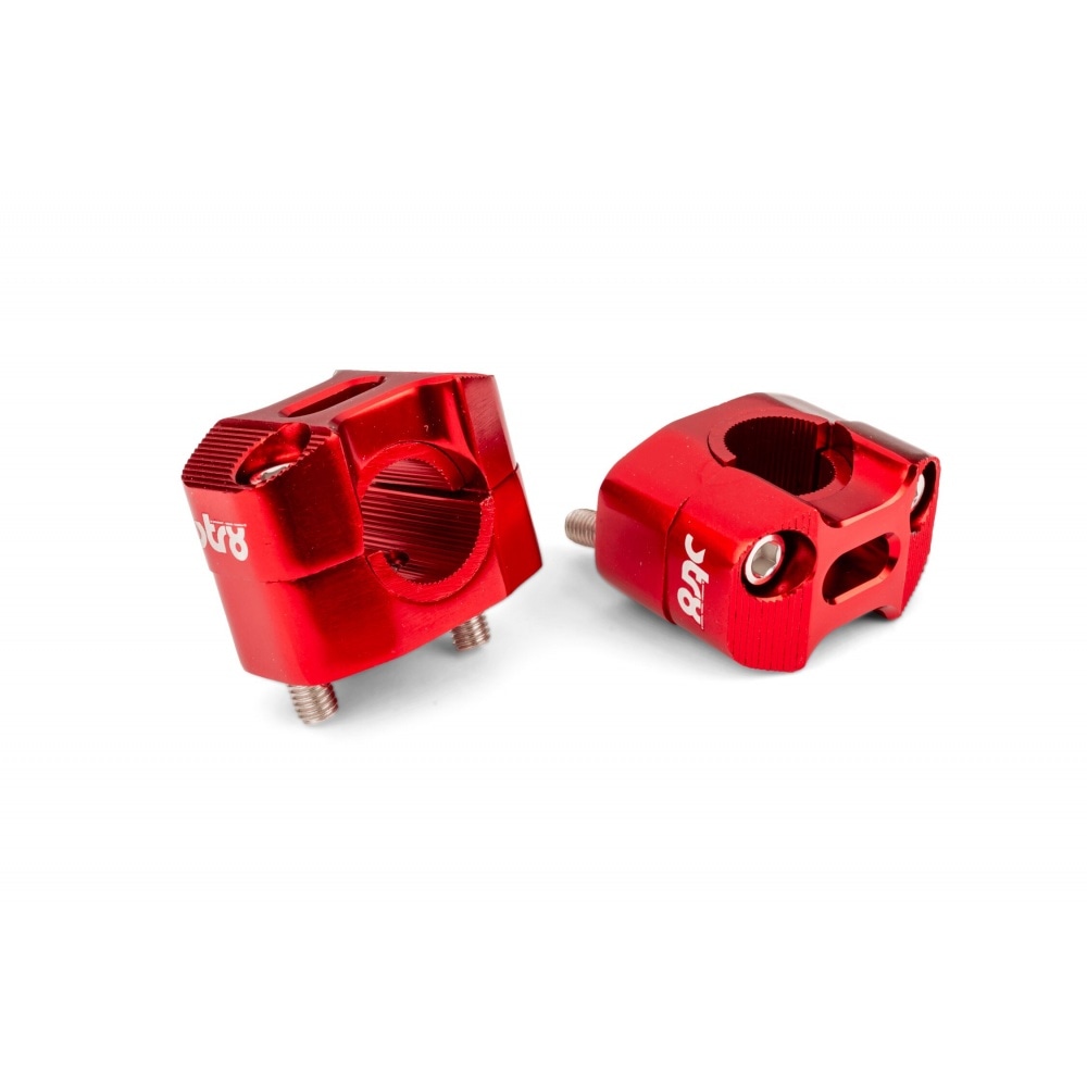 Handlebar Clamps / Brackets d.28.6mm red, CNC-milled handlebar clamps for mounting handlebars with larger diameter (Fatbar Style). Robust and stylish, universal fit. The clamps are sold as a pair.