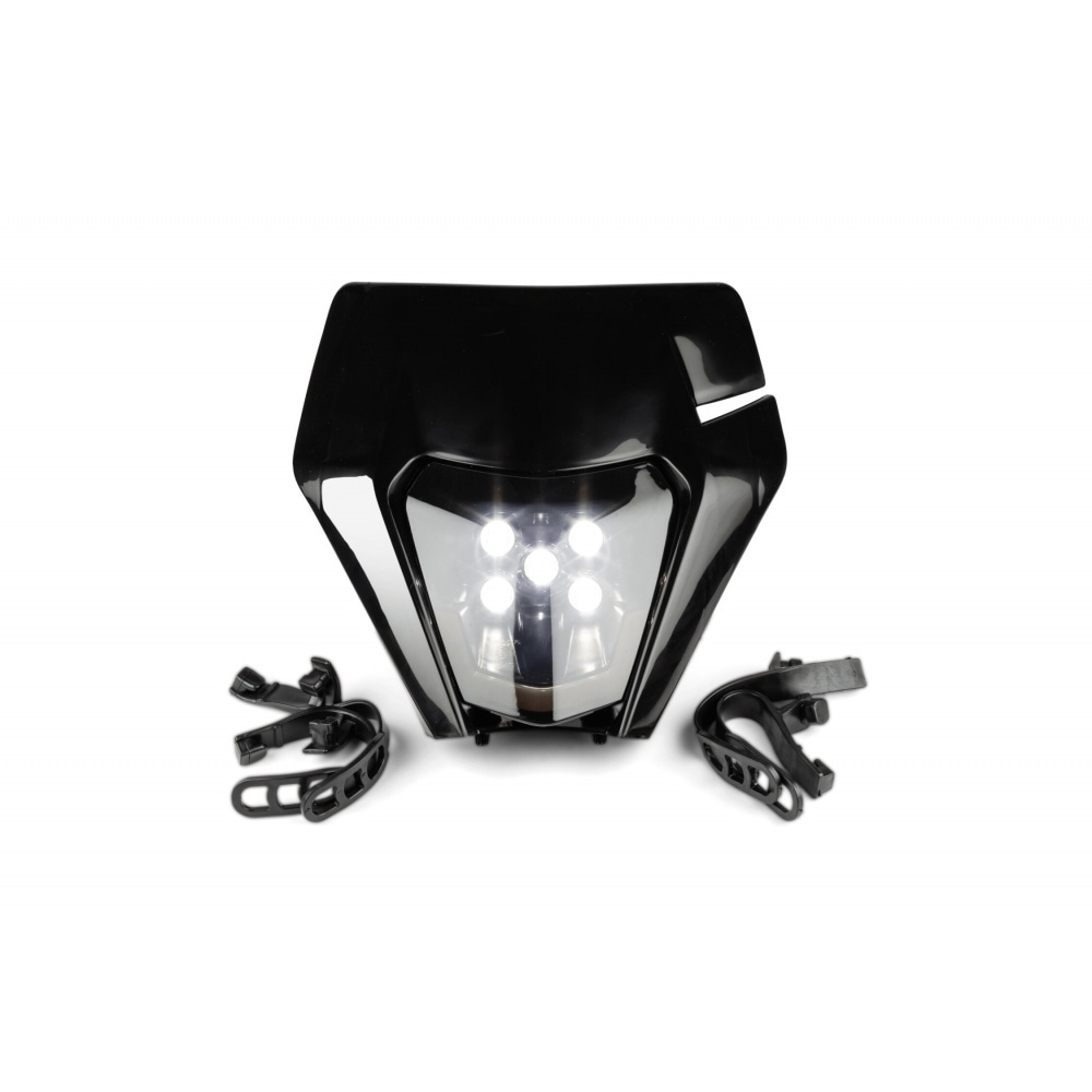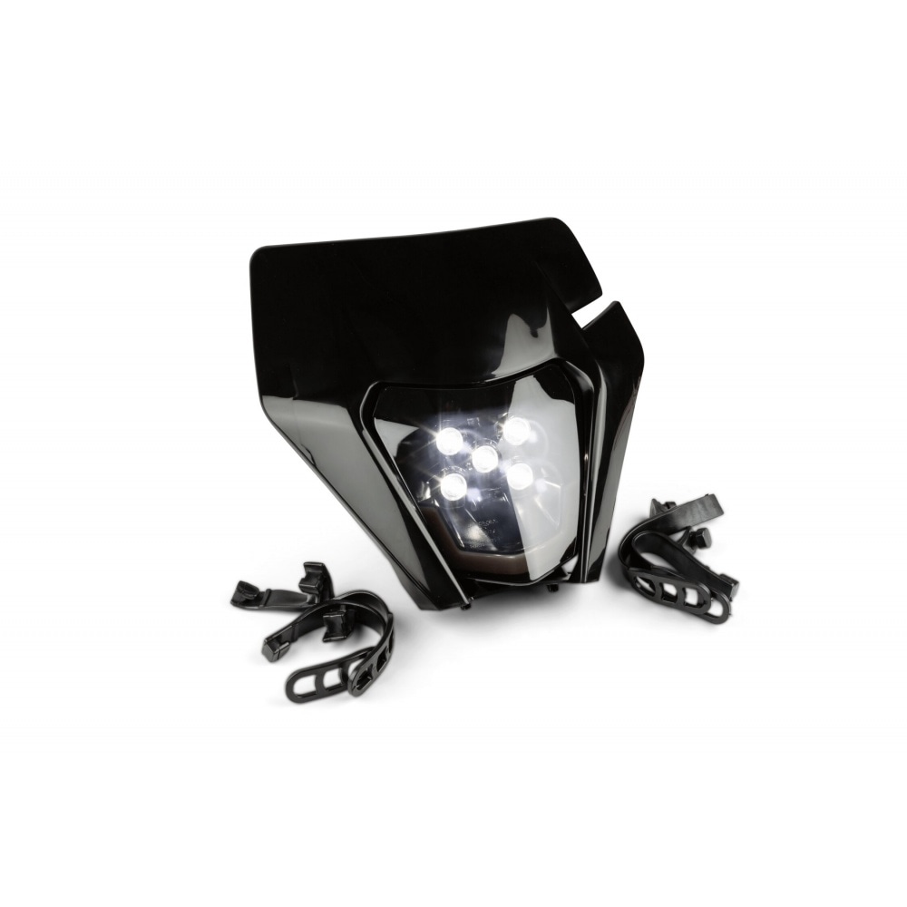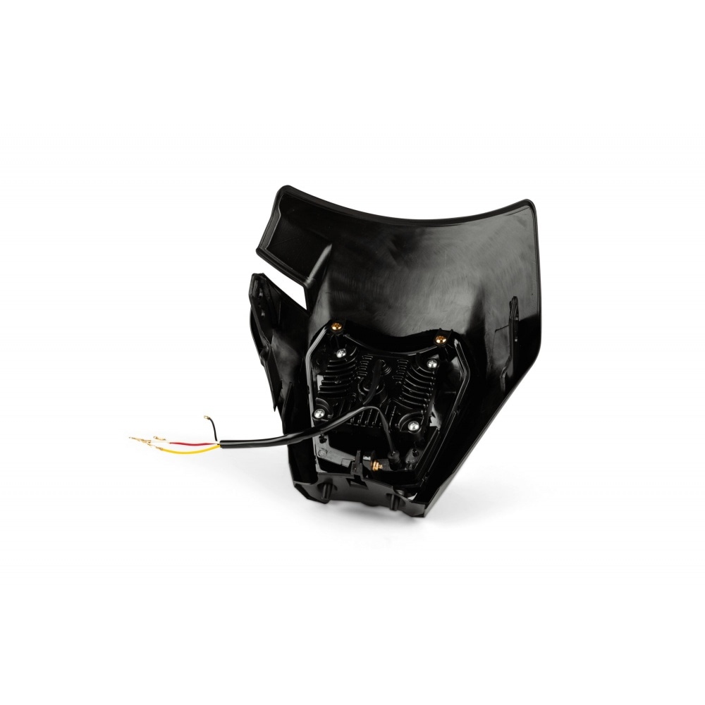 LED headlight mask type KTM EXC 2020 - 2023, black with smoked lens, for 50cc supermotos, motocross bikes, enduro bikes or other two-wheelers.