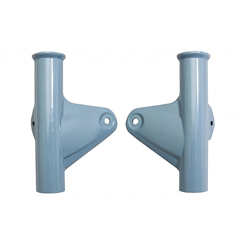 Headlight Mount blue MBK 88 – 2x vintage look blue holders for the headlamp of your Moby. The two pieces are mounted to the fork to hold the headlight which is attached with 2 hex head screws.