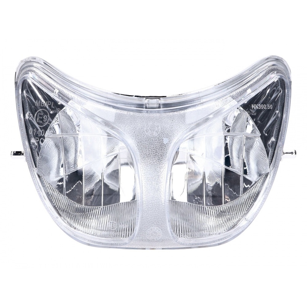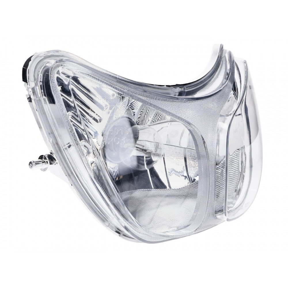 Spare headlight for popular twin headlights for Derbi. The headlamp is a replica of the original headlamp in terms of function and dimensions and has an ECE-mark. The lamp socket is included as well as a 35/35W bulb.
