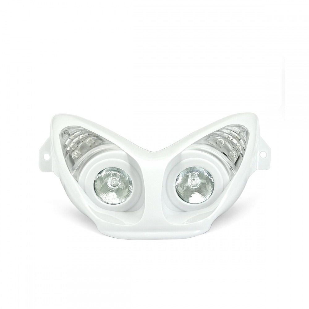 Twin light headlight, white, with LED indicators.