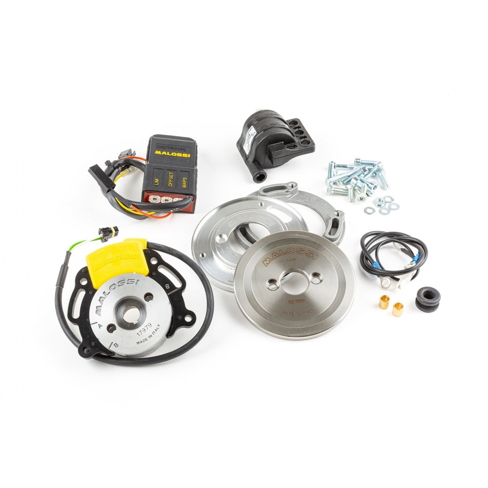 Malossi veica visu aizdedzes sistēmu un izvēlējās tikai augstākās kvalitātes komponentus. Jaunajai augstsprieguma spolei ir maksimālais izlādes ātrums 40 KV, kas ļauj sasniegt ātrumu virs 3000 apgr./min, un sensacionāls uzplaukuma periods @10bar> 1750 V/uS. Jauns un uzlabots arī rotora/statora komplekts, kas abi ir pārstrādāti un tagad ir vēl stabilāki un efektīvāki; mehāniskajā un elektroniskajā līmenī rotors un stators tagad vēl labāk sadarbojas.