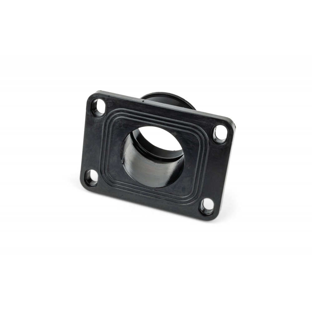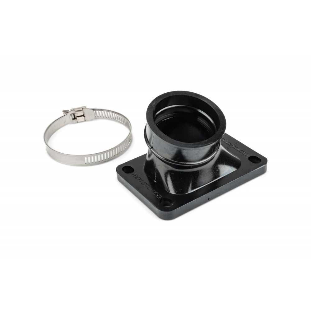 MotoForce Racing intake manifold PWK: The MotoForce Racing intake manifold is made of hard rubber and has four elongated holes for perfect installation on Minarelli AM6 and Derbi engines. This vulcanized rubber is resistant to hydrocarbons and provides an excellent seal for the intake tract. A reinforcement is fitted to the back of the intake manifold to support the weight of the PWK carburetor.