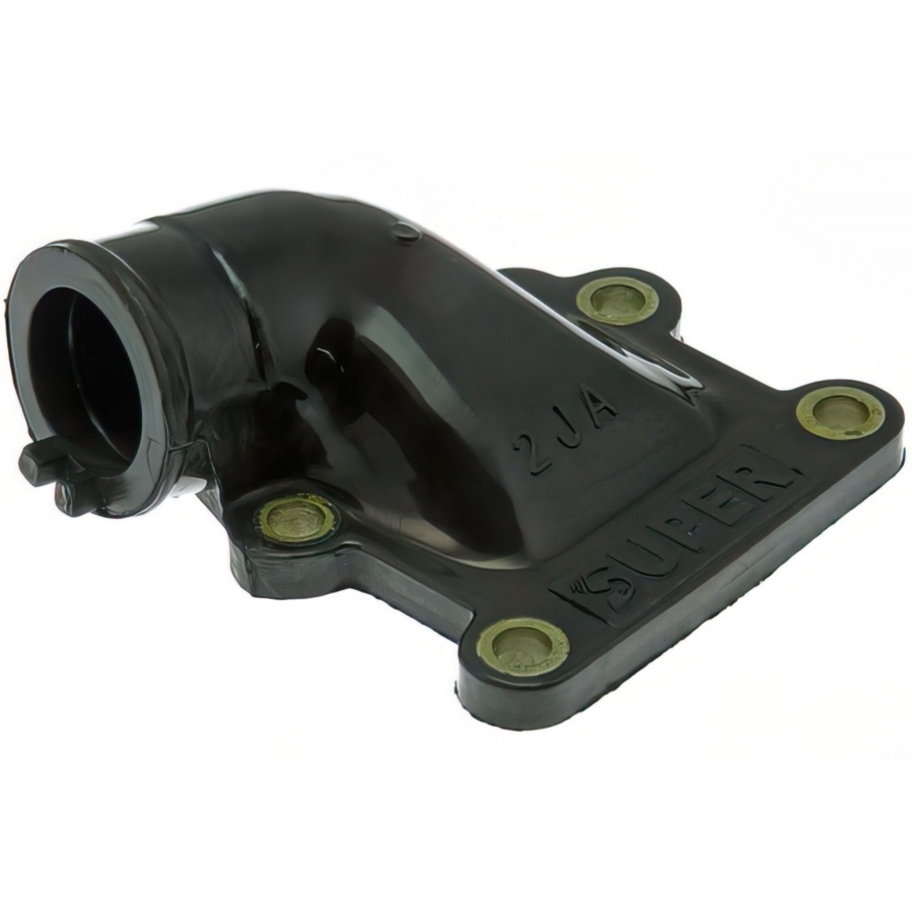 Intake Manifold derestricted 21mm Minarelli vertical. Many stock scooter engines are restricted via an intake manifold. Replacing the stock manifold with this open, unrestricted version will boost performance. This becomes particularly important when switching to a larger carburetor. This intake manifold is suitable for 17.5mm to 21mm carburetors.