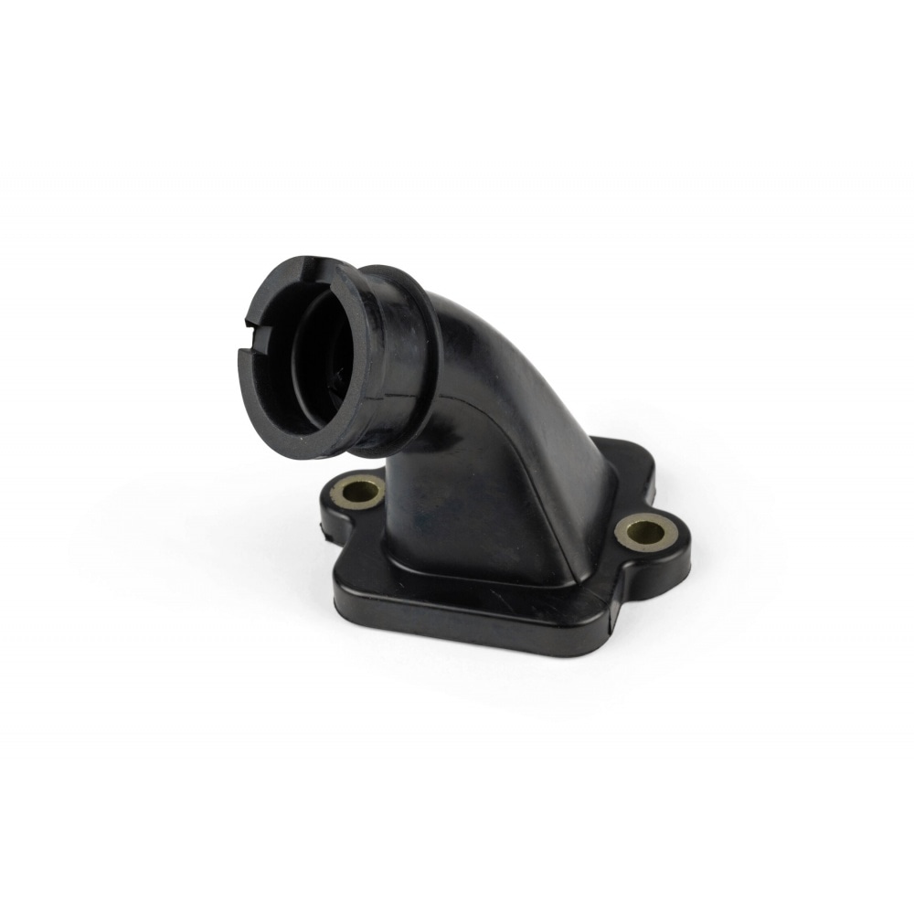 Intake Manifold derestricted 21mm Peugeot horizontal. Many stock scooter engines are restricted via an intake manifold. Replacing the stock manifold with this open, unrestricted version will boost performance. This becomes particularly important when switching to a larger carburetor. This intake manifold is suitable for 17.5mm to 21mm carburetors.