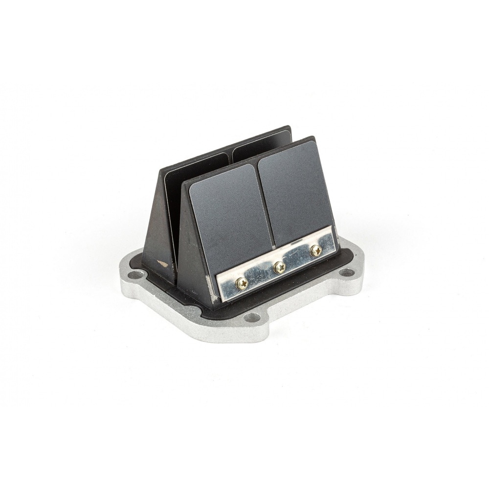 Reed valve Italkit W-Force, incl. intake manifold, Aprilia RS125/Rotax. The W-shaped block can take 8 reed petals. Comes with a 34mm intake manifold (the original has 28mm), so you can use a larger carburetors.